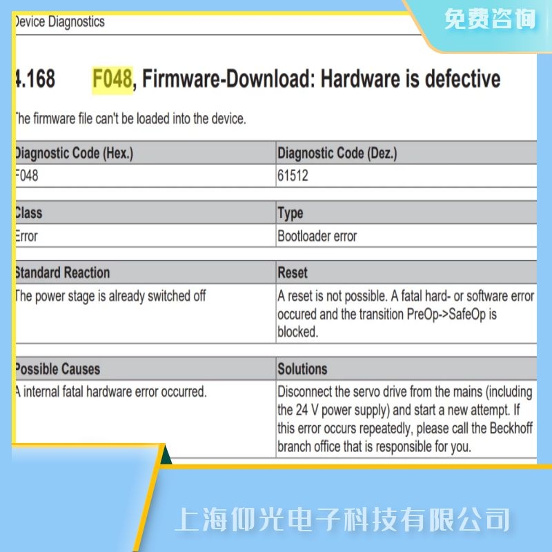 嘉定beckhoff倍福報(bào)F048維修解析:
