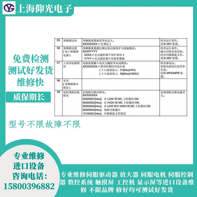 伺服驅(qū)動(dòng)器維修 伺服電機(jī)維修 觸摸屏維修 變頻器維修